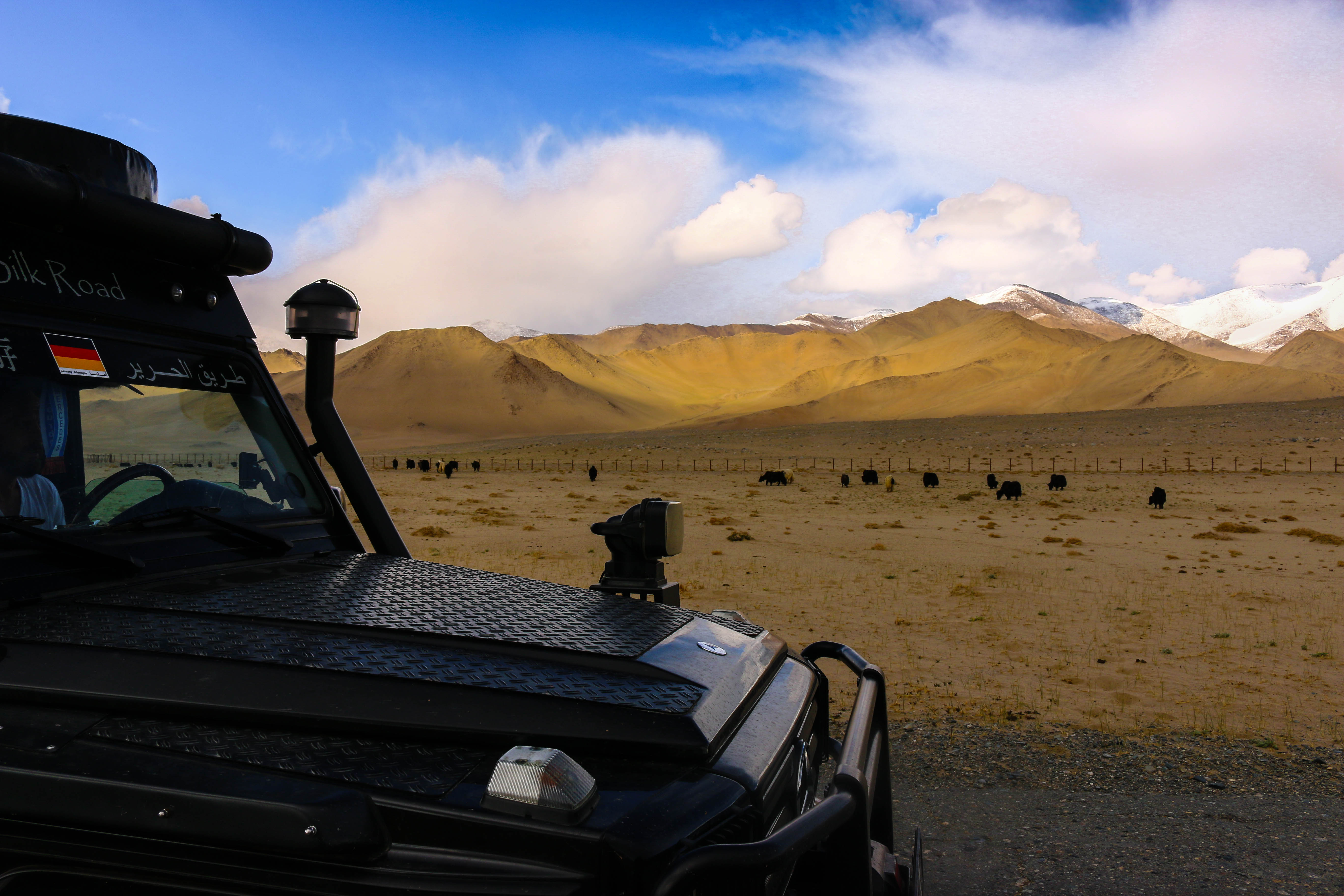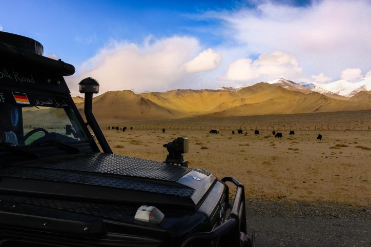 Grenzzaun zu China und eine Yakherde