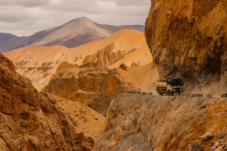 Trucks auf der engen Straße