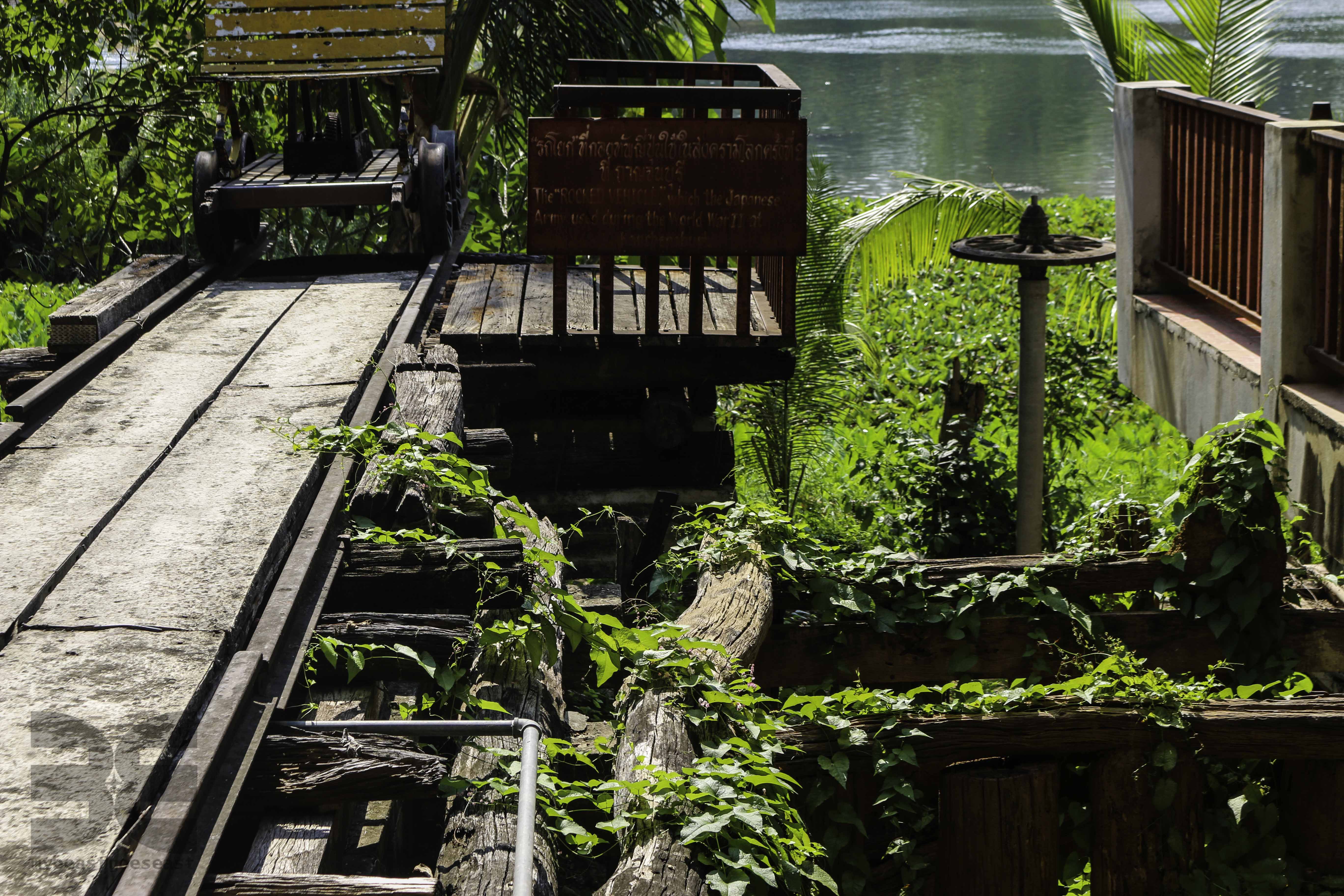 Reste der alten Holzbrücke am River Kwai